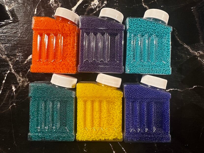 ジェルボール ハイパーシューティングに使用するジェルボール 水に浸すと1時間ほどで最適な大きさになります。 7~8mm およそ2万発 ランダムで3色入れます。